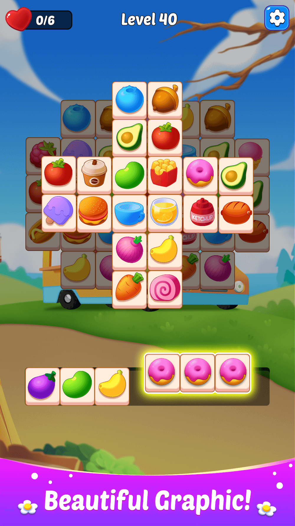 Tile Match – Match 3 Puzzle will bring you extremely attractive levels and challenge your intelligence. Coming to this game, you will become a super chef, and your job is to make delicious dishes for the guests coming to your restaurant. But in this game, your cooking is also extremely new and unique. You will choose the same ingredients and combine them until they become a complete dish. Are you ready to come to these extremely interesting levels?
