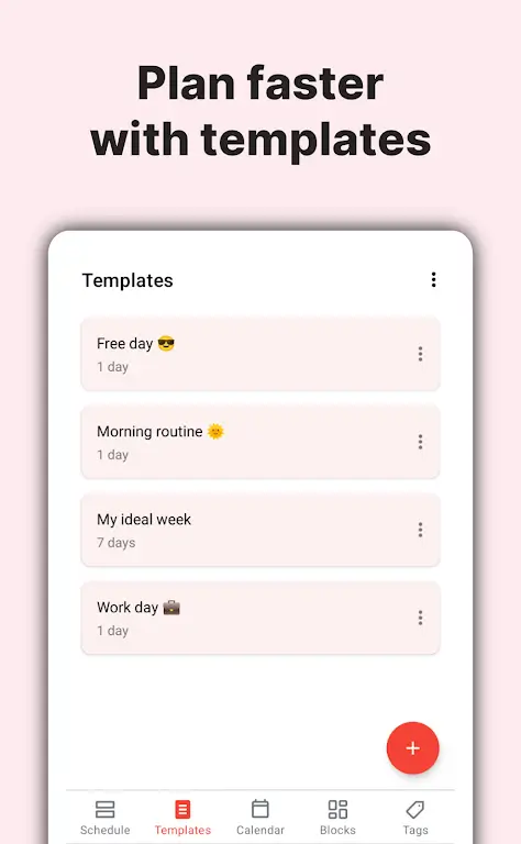 The application also allows you to create and save schedule templates so that you can reuse them to avoid wasting time arranging daily habits or fixed work shifts.