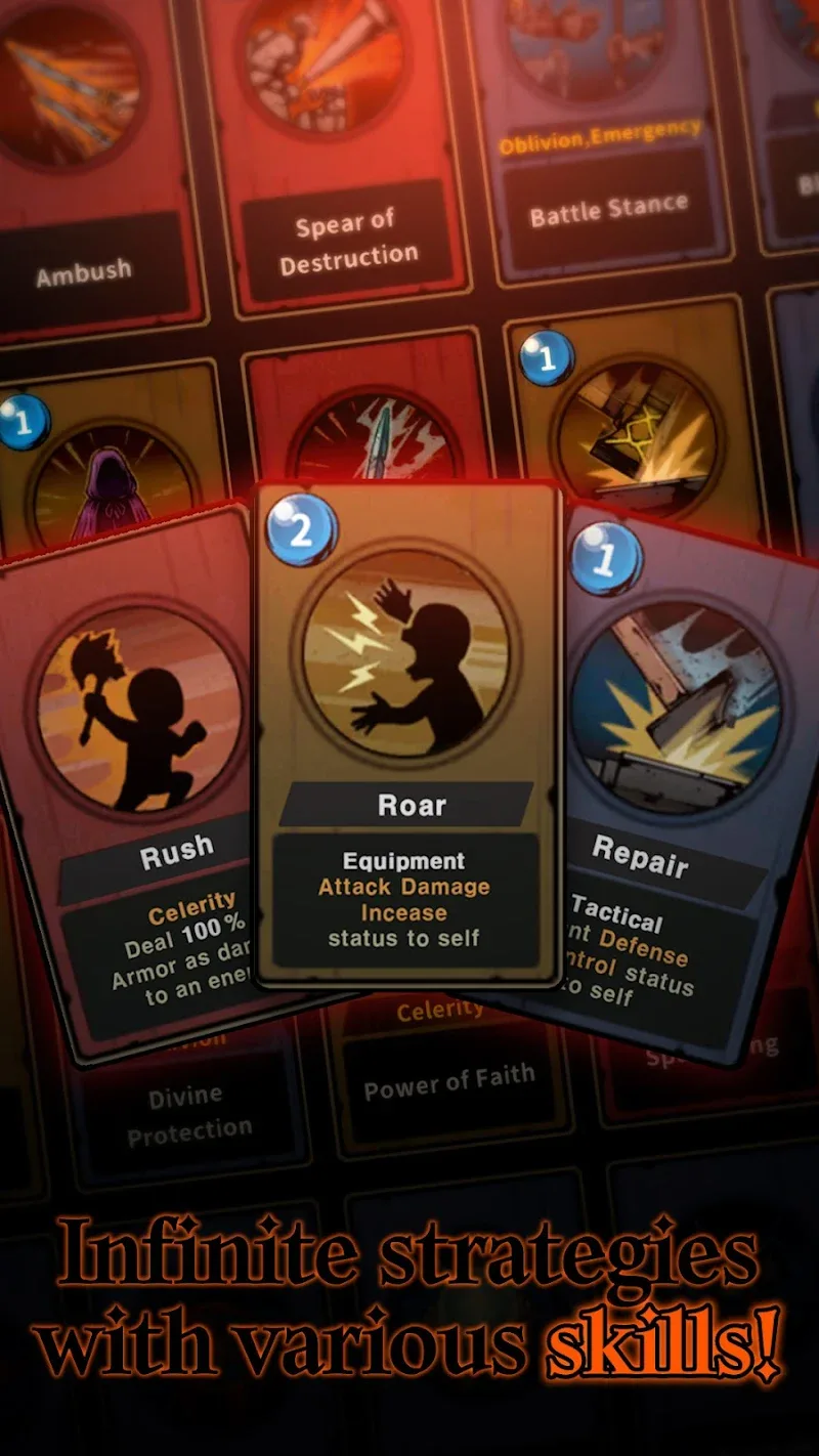 - Collect and recruit characters: Collect and recruit characters with unique skill cards to build your deck.