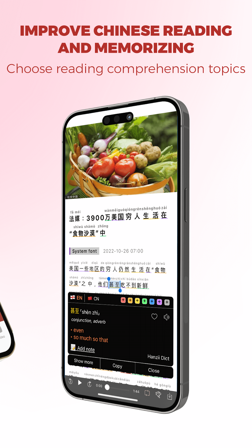 The app’s reading teaching has a comprehension with various materials ranging from beginner to expert levels, covering various topics, including the basic and necessary topics in daily life. These resources cover a wide range of topics. Besides that, the app has a built-in news reader, where you can approach various Chinese news for learning purposes. You can choose to read Chinese with or without the assistance of Pinyin. Include a tool that looks up words or phrases in the body of the article itself, making it available with just one click.