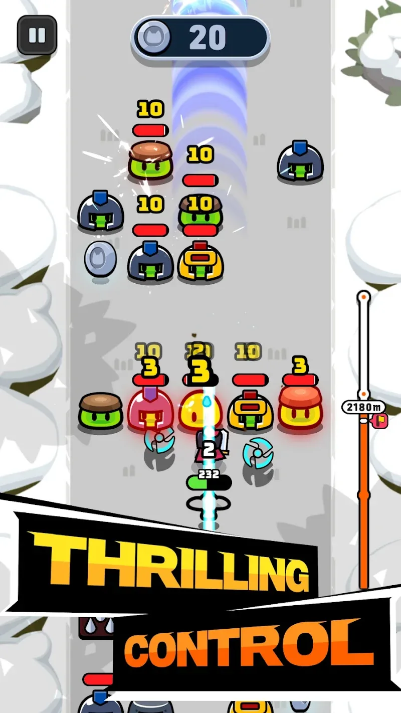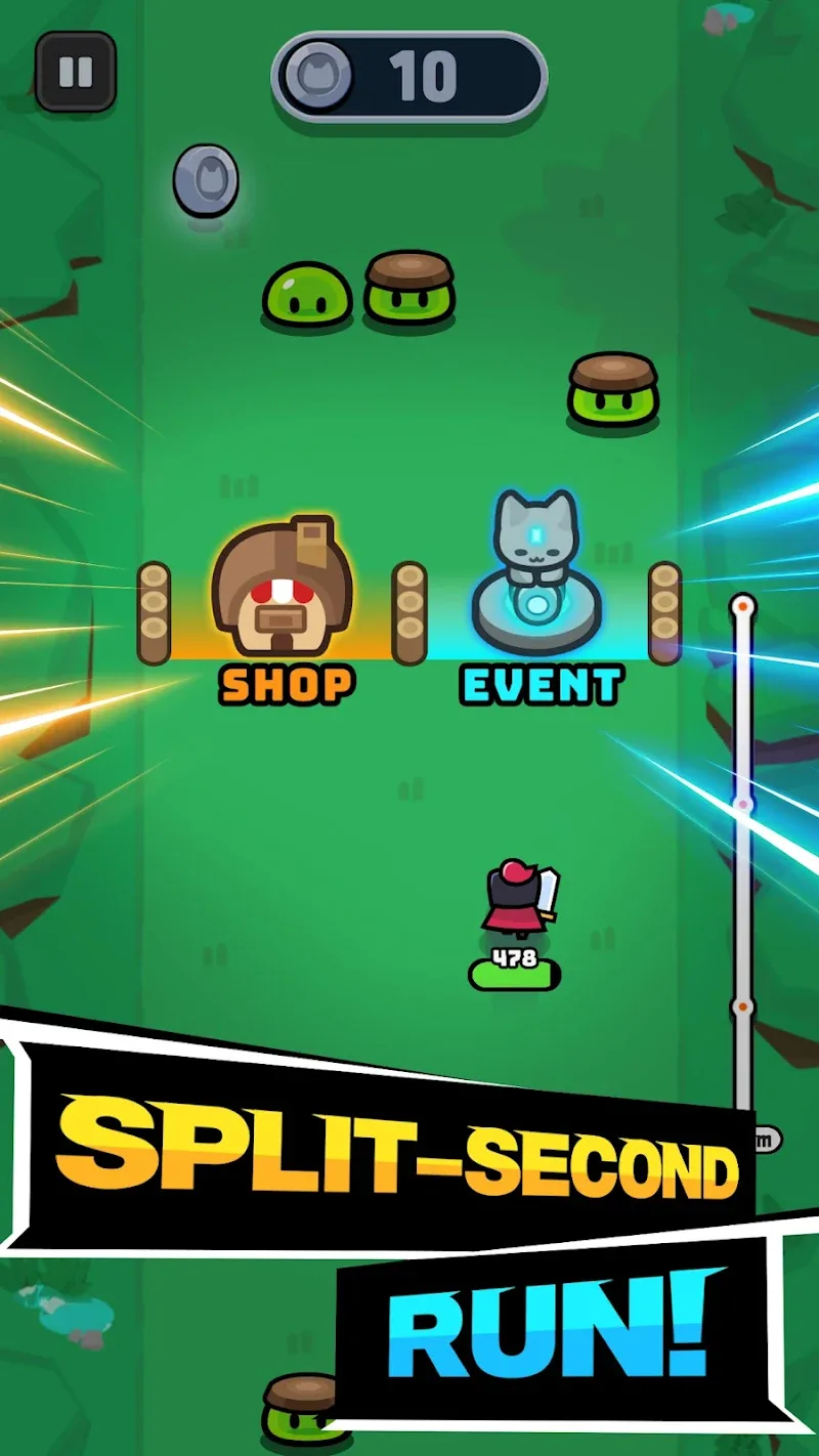 Players will know that their mission is to break the slimes on the track and rush to the finish line in the fastest time. You will meet your opponents on the track; you can take advantage of them to keep your energy. Besides, you should also grab coins to convert energy, supporting yourself during the game.