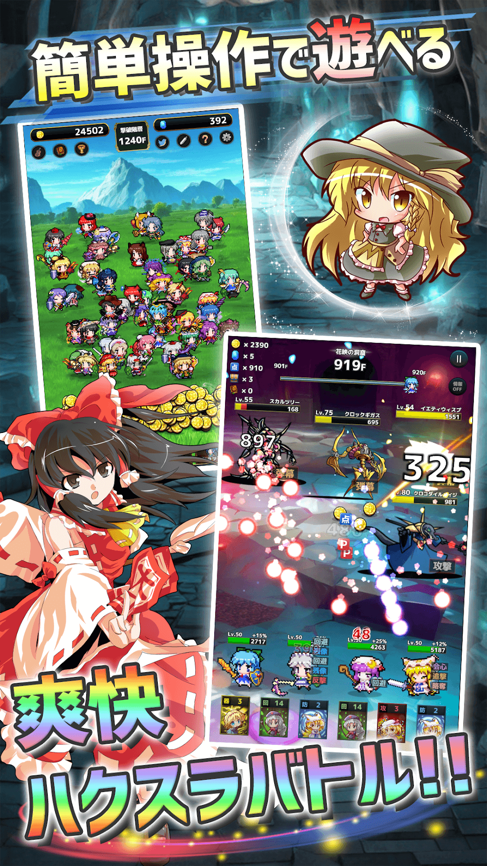 Dungeons will be the venue for hundreds of confrontations between warriors. The rise of vampires may affect the world in 東方ダンジョンバトル – オートバトル系ハクスラ弾幕RPG. A series of remade scenes from the Touhou Project will appear. Players can prepare equipment and be ready to accompany hundreds of warriors.