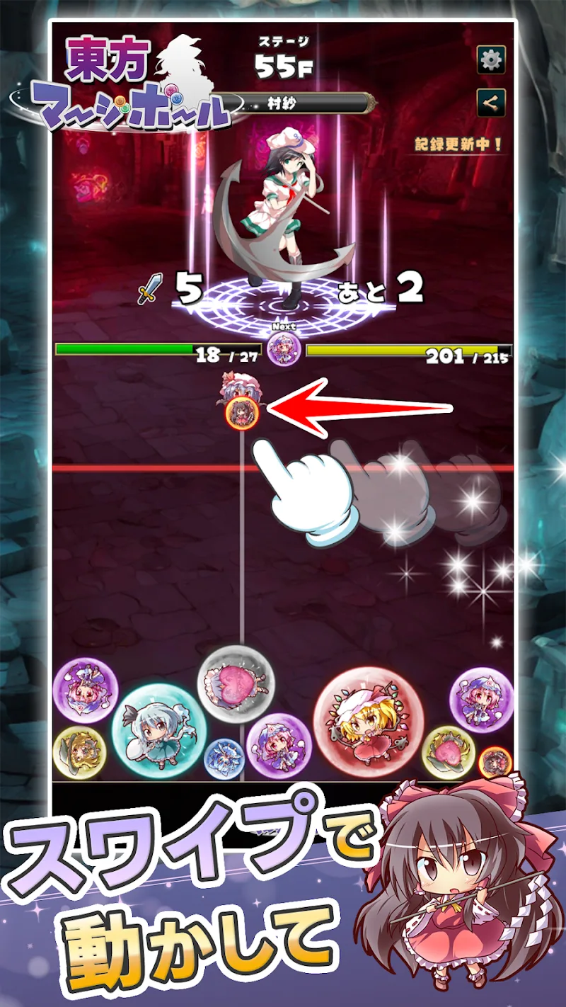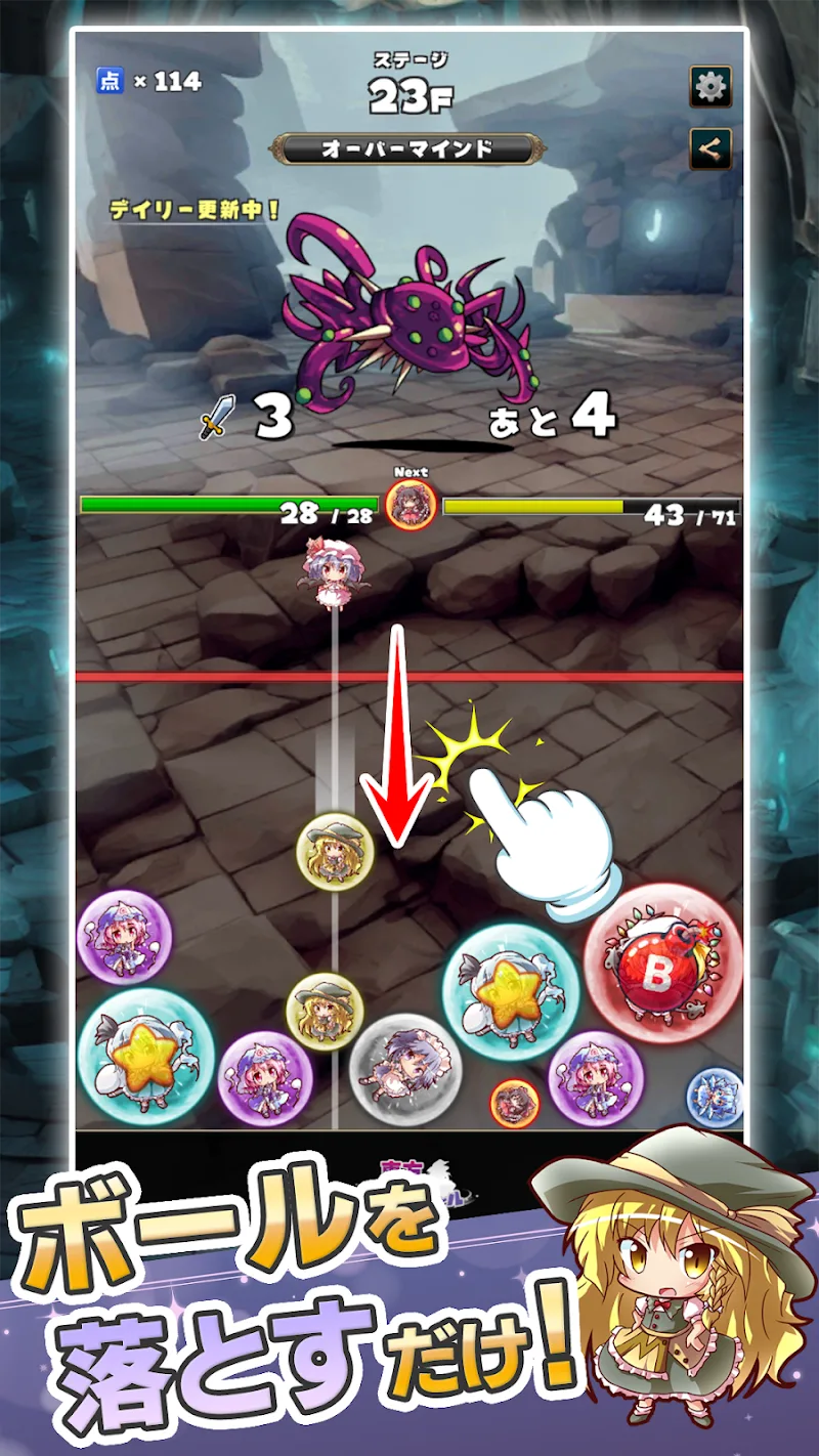 - Connecting balls: To be able to confront their enemies, players will need to combine Touhou character balls to make them bigger.