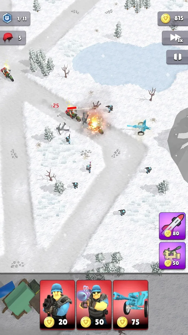 The game gives you extra help with soldiers and weapons to make it easier to win. The game has many tasks for you to try to test how well you can handle them. Encourage players to think ahead and get the upgrades they need to increase their number of troops during the game.
