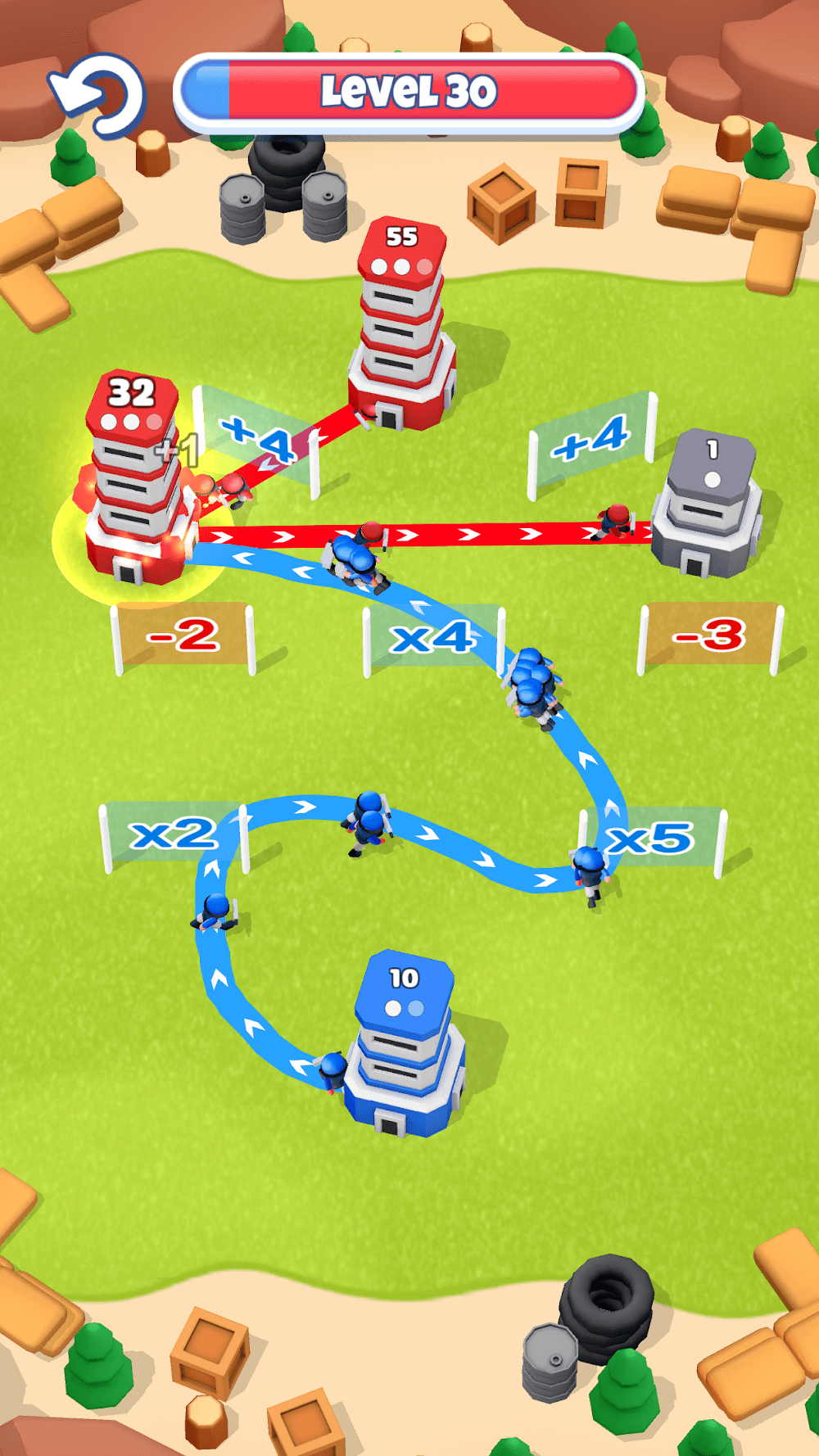 Choosing your target wisely is an extremely important factor in Tower War because it will help you win or lose immediately. Specifically, gray towers will often be prioritized because there are no opponents that will constantly stop you, but other colored towers do. So you will swipe a line from your tower to the tower you wish to capture and let the drawn path come into play as the soldiers will move on it. In addition, for towers that already have soldiers, you just need to remove all those soldiers to return the tower to 0, and the capture will be completed. This will apply to your opponent’s buildings, which are often a more difficult target than empty buildings.
