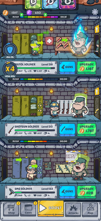 Train Army: Military Empire lets commanders customize their warfare with a flexible ability-unlocking system. As levels progress, new abilities appear, opening up new possibilities. Tactical diversity allows commanders to customize their strategies, making each battle unique. The endless options reflect your combat style, whether unleashing firepower or maneuvering troops precisely. War is now about unleashing your personal warfare symphony and enjoying the harmonious dance of destruction.