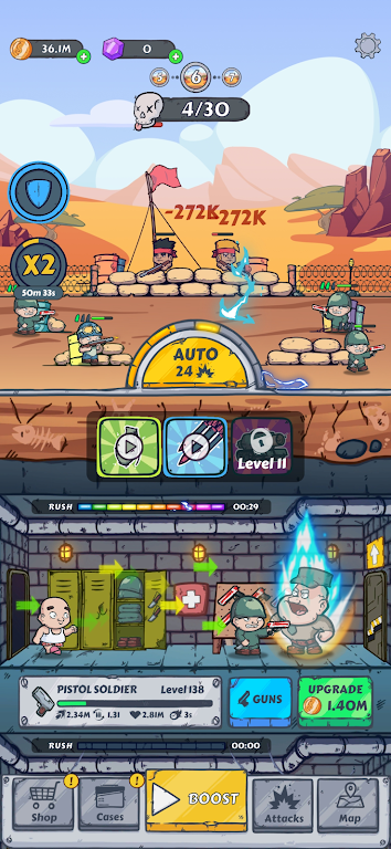 Commanders in Train Army: Military Empire participates in combat beyond training and directing. This personalizes every battle and gives you unique skills on the battlefield. The hands-on approach enhances your leadership and commander-troop bond. The camaraderie makes every move a team effort, a beautiful blend of tactical skill and battlefield intuition. It’s a never-ending pursuit of victory where your strategic masterstrokes turn the war in your favor and immortalize your legacy.