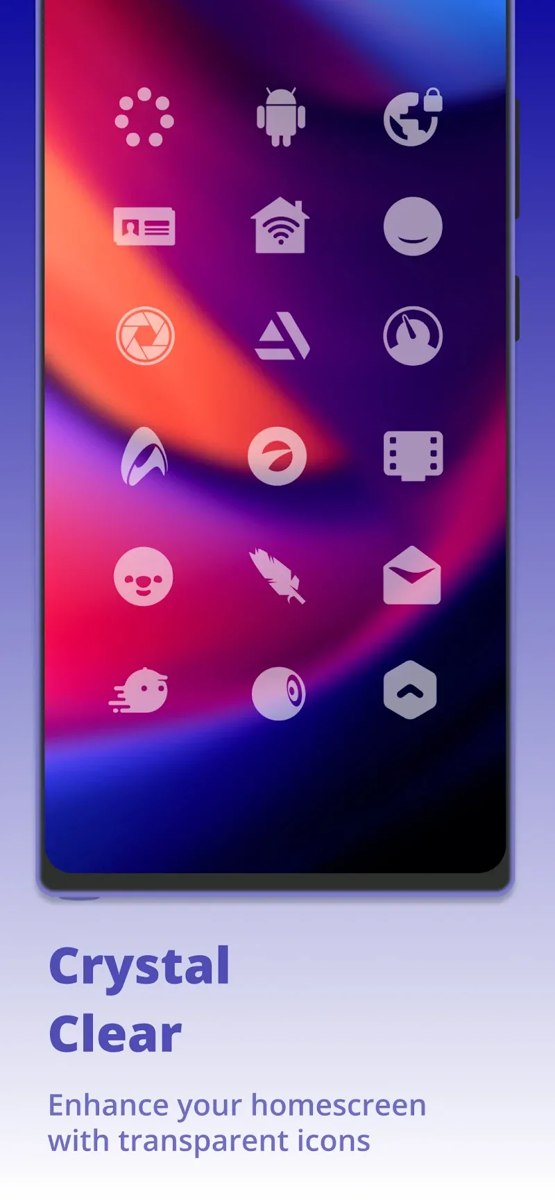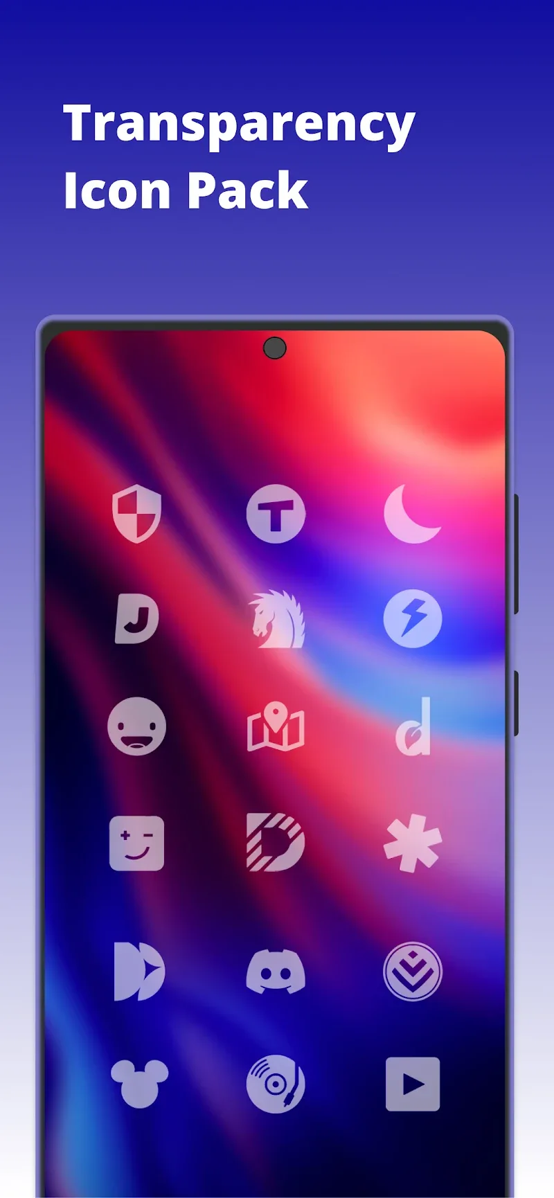 Transparency Icon Pack is a beauty application for your phone. With this application, your phone will become much more beautiful and brilliant than the boring default screen. You will experience a completely new interface with unique icons that give you extremely interesting and attractive experiences when using. What are you waiting for without coming here to beautify your phone?