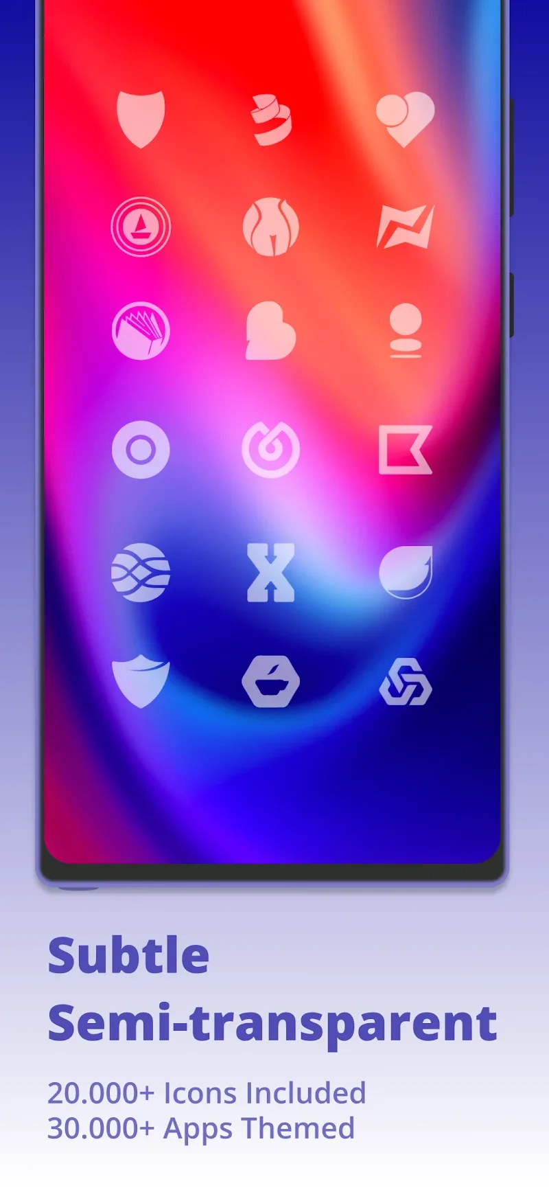 - Seamless Blending: These icons have extremely unique designs with a semi-transparent interface. With these icons, your phone will become much more interesting and stylish when using them to decorate your phone.
