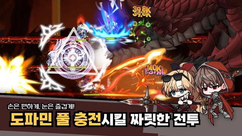 Players of 트리니티 가디언즈: 혼돈의 탑 use magic to fight against the forces of darkness. Colorful battles will be created. Players face battles containing many types of monsters. They will have to choose the right warrior to start the fight. The top task of the game is to protect the world.