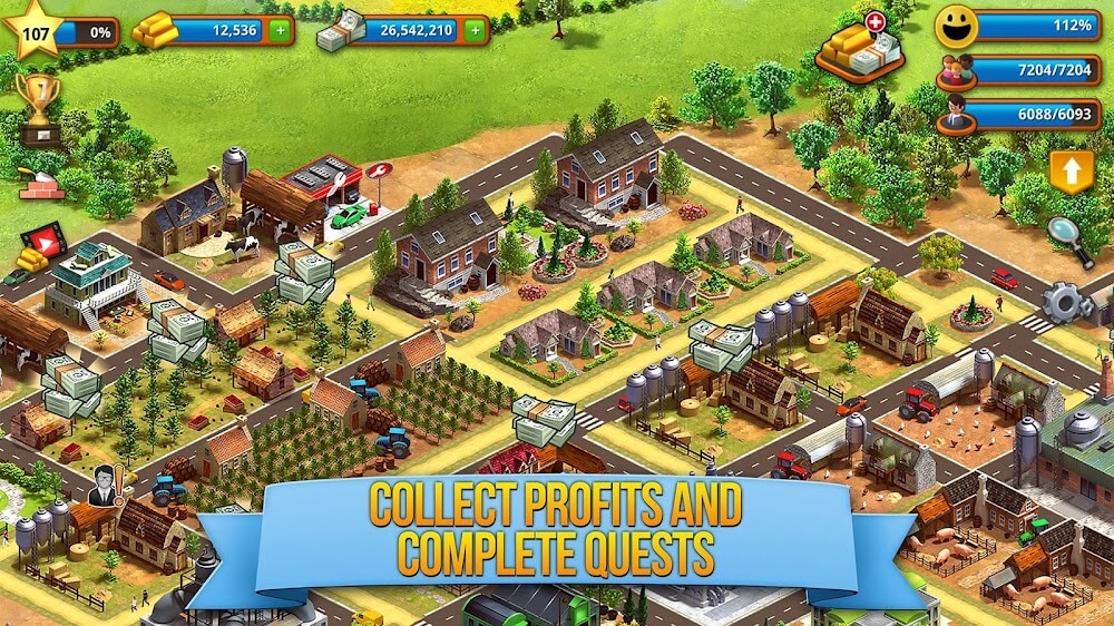 Your first task is to build a prosperous city and start it by making a house so that people can have shelter in that room to live in your town. Charming Chateaus, Cozy Cubbyholes, Modest Homestead, Upscale Bungalow, Idyllic Cottage, and various kinds of houses will unlock at each level. They can be bought with gold or cash you have earned. To build the House, select and drag it to an empty space, then click on the green tick symbol to fix the House. But buildings need to be built beside roads so that everything is accessible to the citizens of your city. To build roads, select the Roads icon; it contains three types of routes: Road, Walkway, and Canal; then tap on grids to build them, and you can create your design and choice of directions.
