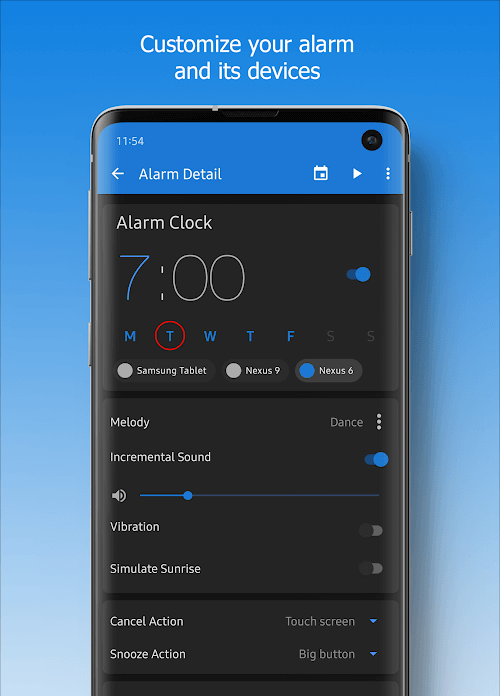 Adjusting the wake-up time is not new to users when they use Turbo Alarm, and they can set different factors. They will set the time and use the playlists they want to make waking them up easier. Also, a new setting is added for this application, which is the type of task they want to use. The job of this task is to keep the user awake.