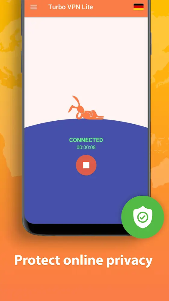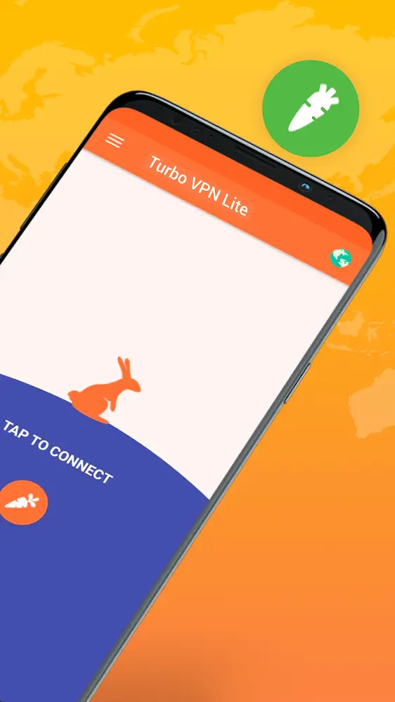 Turbo VPN Lite has a friendly interface for any user because there are not too many things displayed in front of the main interface. Users will enjoy the simple interface with gentle colors and a rabbit standing on a button. This button is the button that allows users to connect to the servers they desire to use VPN. This usage is completely simple and is at the user’s discretion. In particular, throughout the process, the application will meet all the needs, and it will be arranged into corresponding sections.
