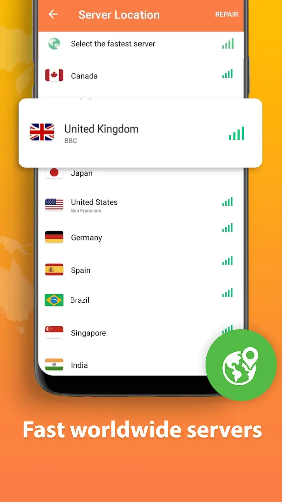 Turbo VPN Lite is a VPN application with a reduced size but still has all the features users need. It provides a variety of servers that users can select automatically or manually. In addition, advanced features such as server selection for each experience have also been added so that they can be used in different situations. This will become a perfect tool for anyone to use because of its simple interface and gentle colors. It will certainly fit many devices, even if your device is not powerful.