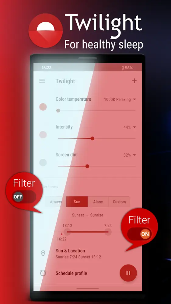 If you are a frequent insomniac and have trouble getting enough sleep, you should use this app to help you improve your sleep. Installation of this application will make you extremely effective in sleep regulation for those who often use it late at night. At the same time, the application is integrated with outstanding features to help filter light and let users use it comfortably.