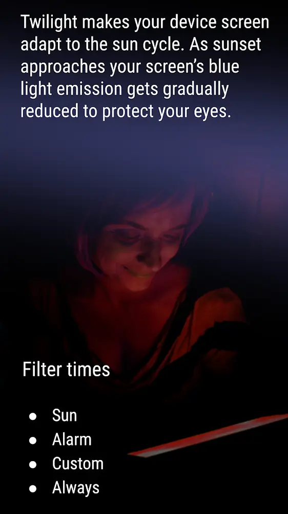 Currently, many users tend to use the phone until late at night and gradually become a habit of not being able to sleep on time and sleep well. It is this factor that brings many unwanted effects to users. Therefore, Twilight has launched to help users use it as a tool for you to regulate sleep better. When you use your phone at night, the application will directly convert red light into the screen instead of blue light as usual, which will keep your eyes awake and not sleep. This red light has stimulated the production of melatonin and improved insomnia exceptionally effectively.