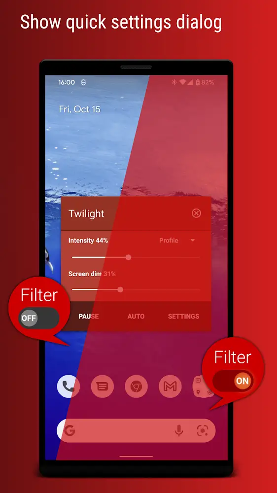 In addition, this application also has a very special function which is to use the light filtering system on mobile devices. If you are using your phone at night, the application will immediately change the light color to make your eyes softer and easier to adjust. Because, at night, you use blue light will keep your eyes awake and unable to sleep. However, users can turn it off when not needed. Besides, users can effectively use this light system to read books at night.