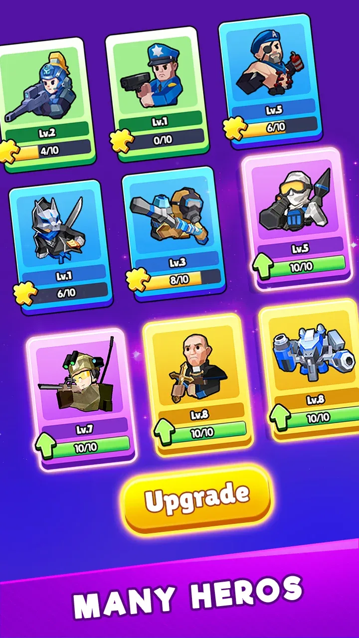 • Collect Unique Heroes: Many new heroes are unlocked by players and brought into the arena. The appearance of these special warriors will break the opponent’s initiative. The zombie legions will be quickly defeated when facing groups of heroes with a lot of experience and strength.