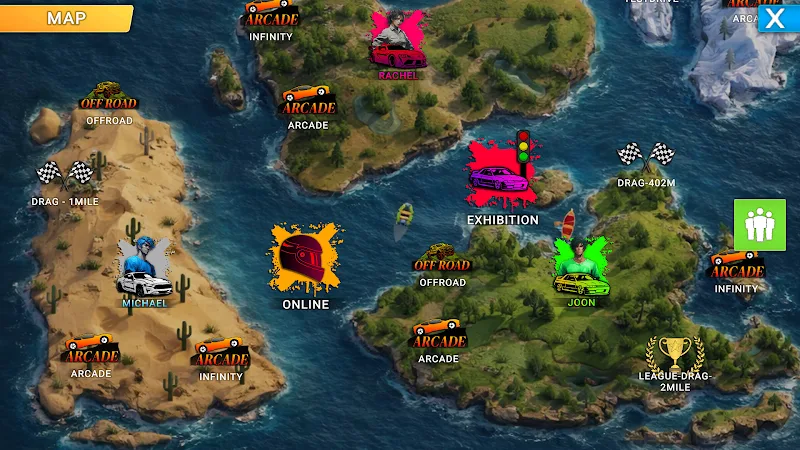 The game delivers a comprehensive high-speed experience. Unlim Drag Racing Super Cars features an in-depth vehicle customization system from engine performance to appearance. Thanks to that, it allows you to master every road. From cities and deserts to jungles, all are places where you will drive through. Completely different terrain challenges will always surprise you with their difficulty.