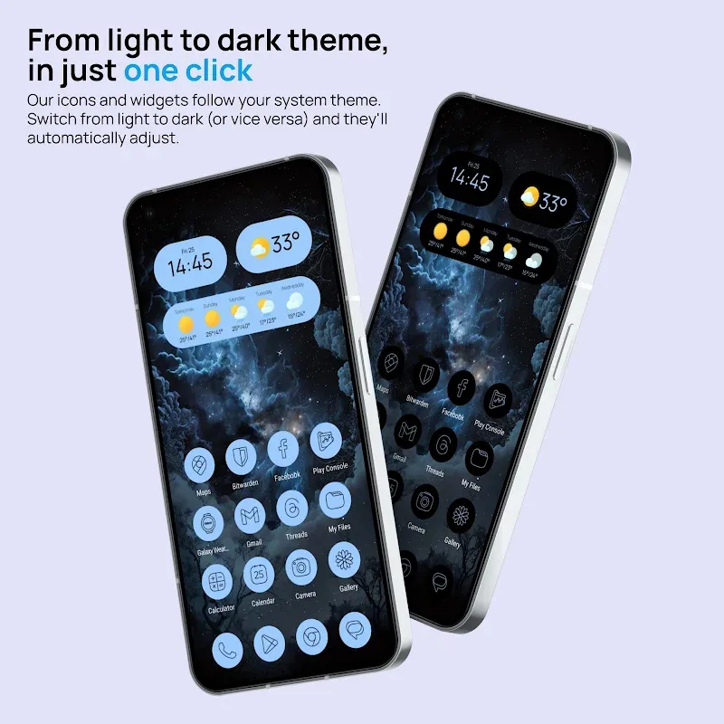 - Massive Icon Collection: Vera Material You application offers exceptional value with over 7,477 icons, 130 wallpapers and 11 KWGT widgets in just one purchase.