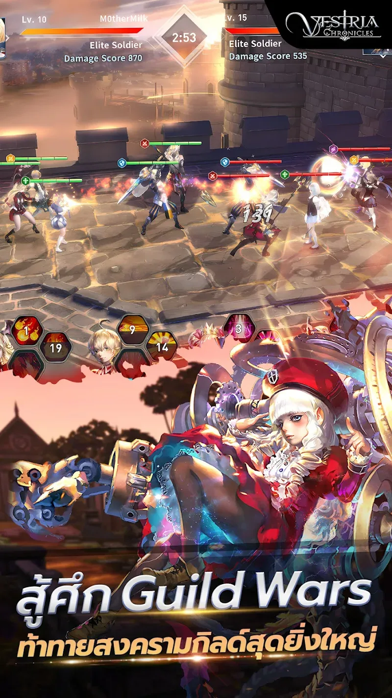 - Epic Team Battles: Players can participate in thrilling team battles to fight against giant and powerful raid bosses. You will be tasked with defeating the characters representing darkness and the evil people who want to bury Vestria in darkness forever.