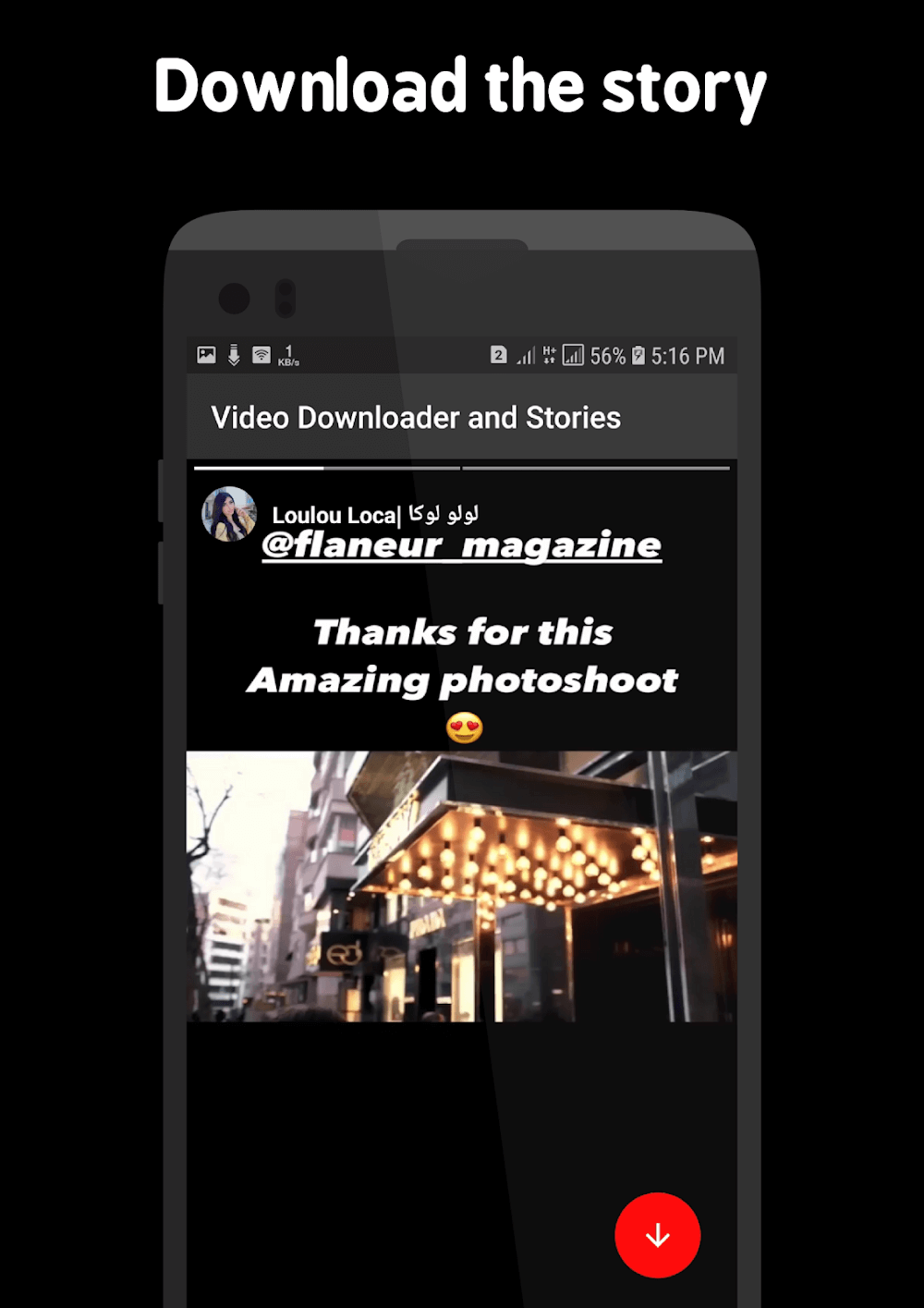 - One click download: With just one click, the application will quickly download stories, moments and videos to the device you are logging in to.