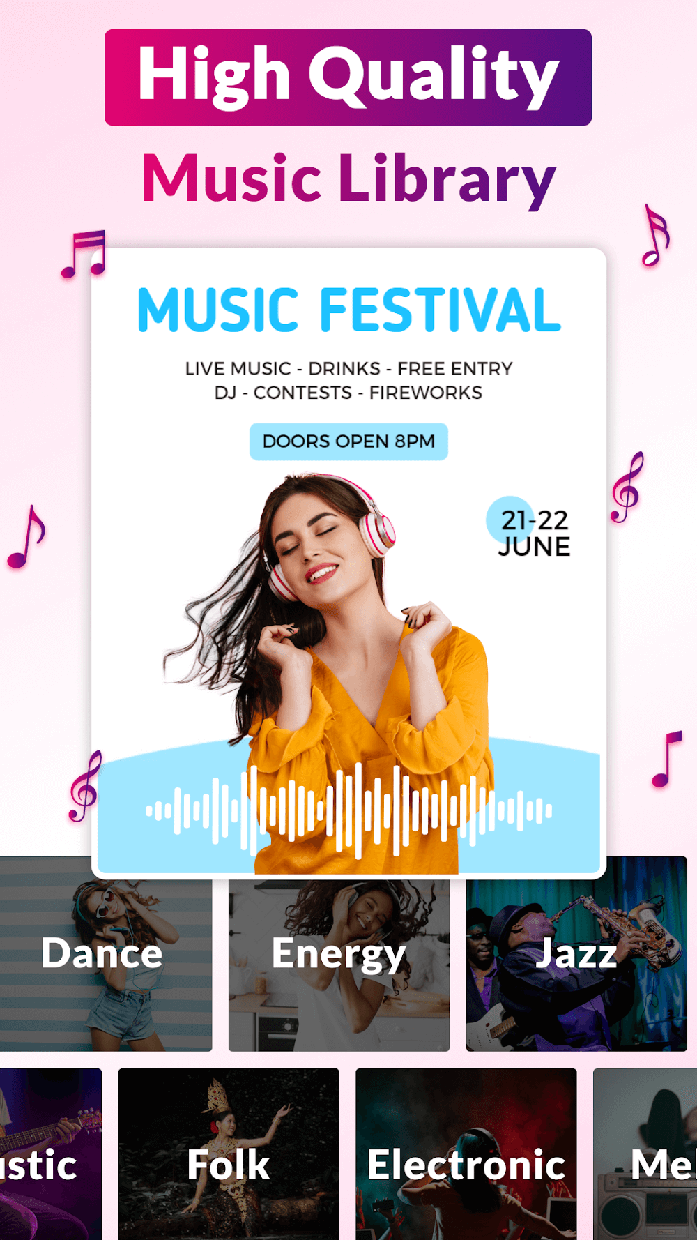 Make your own party flyer from scratch, or use one of the professionally designed templates. Take your pick from a large selection (over a hundred) of professionally designed party flyer designs. Whatever party you want, the app will have suitable templates, so you can create the perfect flyer and send it out to everyone as an invitation. The app guarantees that its creative party flyer examples will leave a lasting impression and motivate you to stand out.