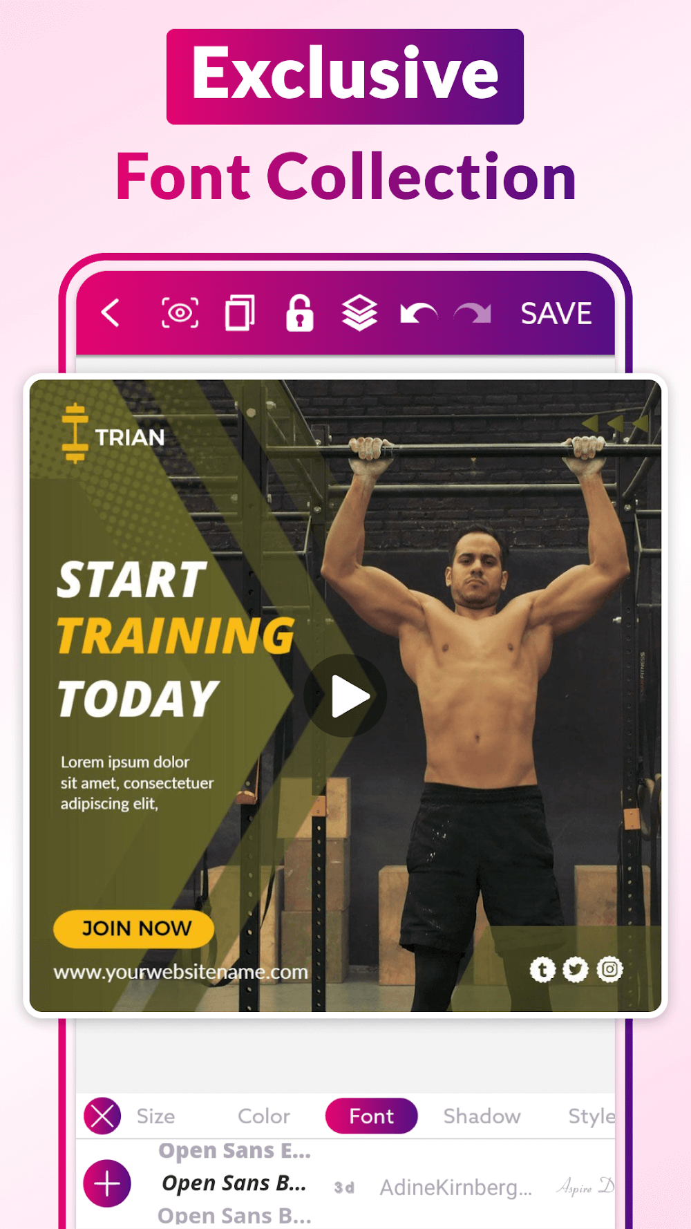 Use the app’s event flyer generator to generate a custom poster for your upcoming gathering. Making visually appealing event flyers is a breeze with the help of premade templates. Thus, this app is a new and exciting design tool for those who aren’t trained as designers. Choose an event flyer template that suits your needs and tweak it to perfection with the additional tools. You can save your work and then download it when you’re finished or add more material or content for your work.