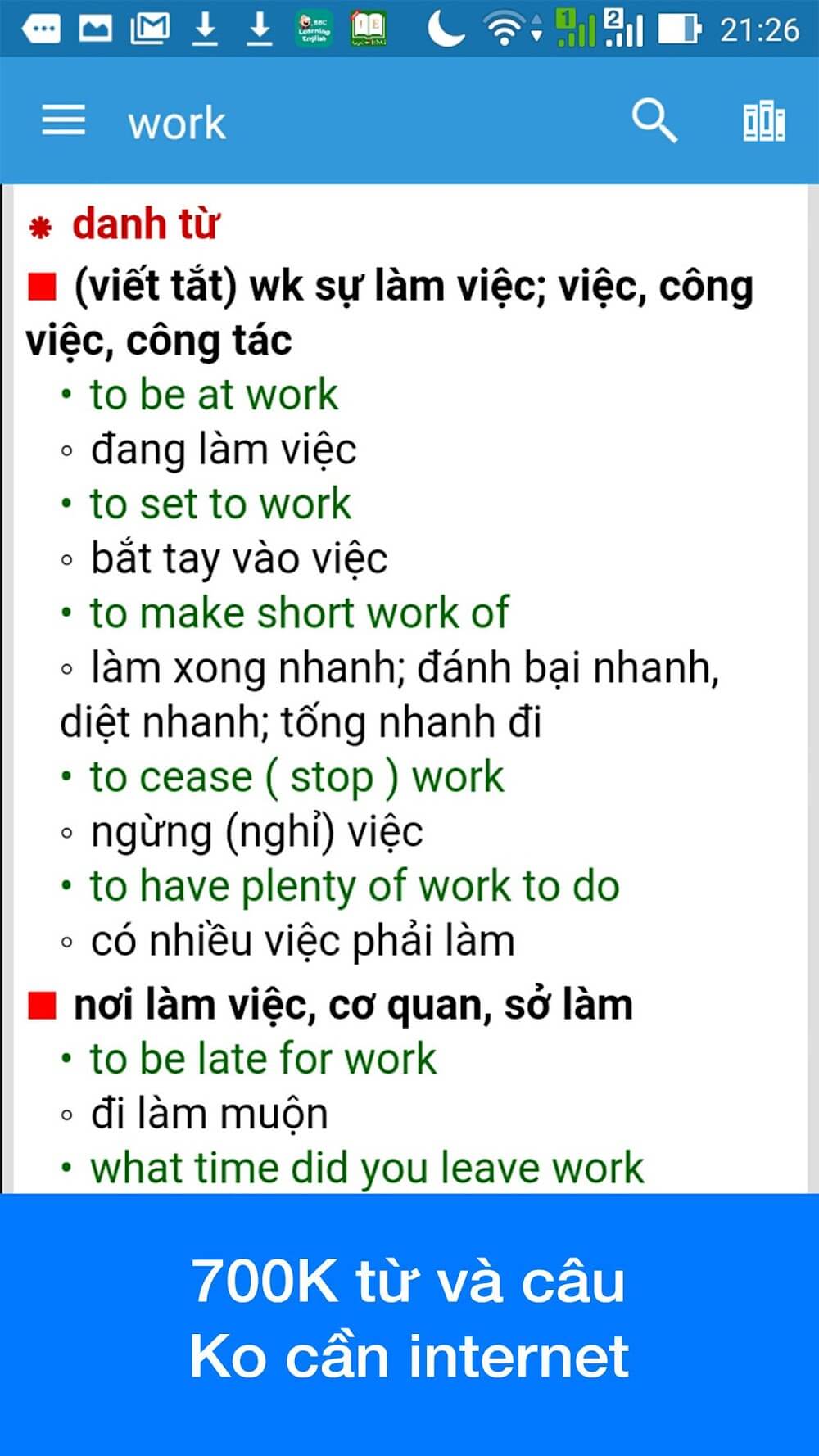 Vietnamese Dictionary Dict Box is an excellent tool for those who are learning Vietnamese and English and want to improve their vocabulary for work and communication. We offer a precise system for explaining words and simple and easy-to-understand examples. You can also add text translations or simple idioms to learn more about Vietnamese culture and people.
