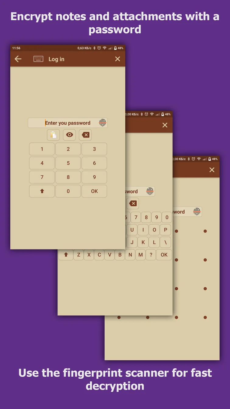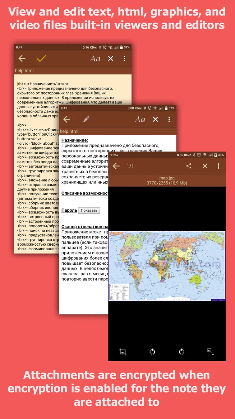 - Data Protection Measures: The interesting point of the application is the creation of fake spaces for incorrect passwords. Of course, everyone can easily recognize this.
