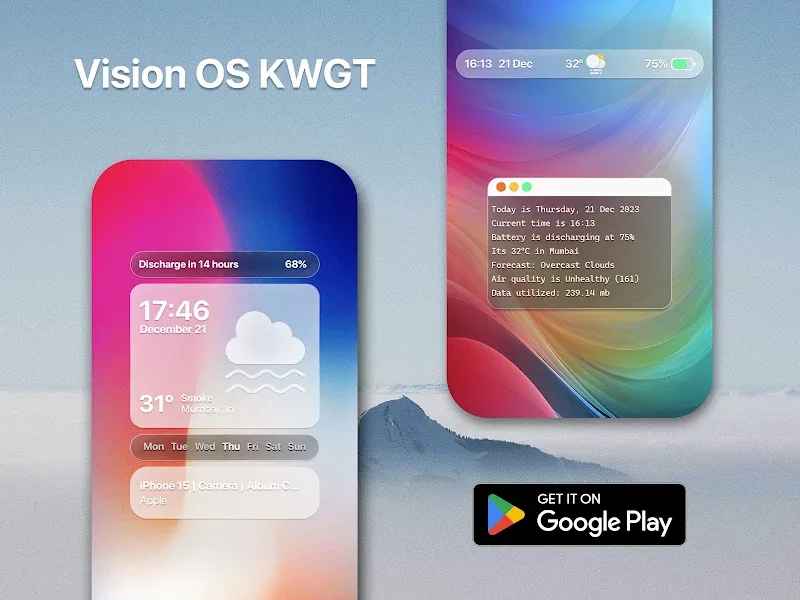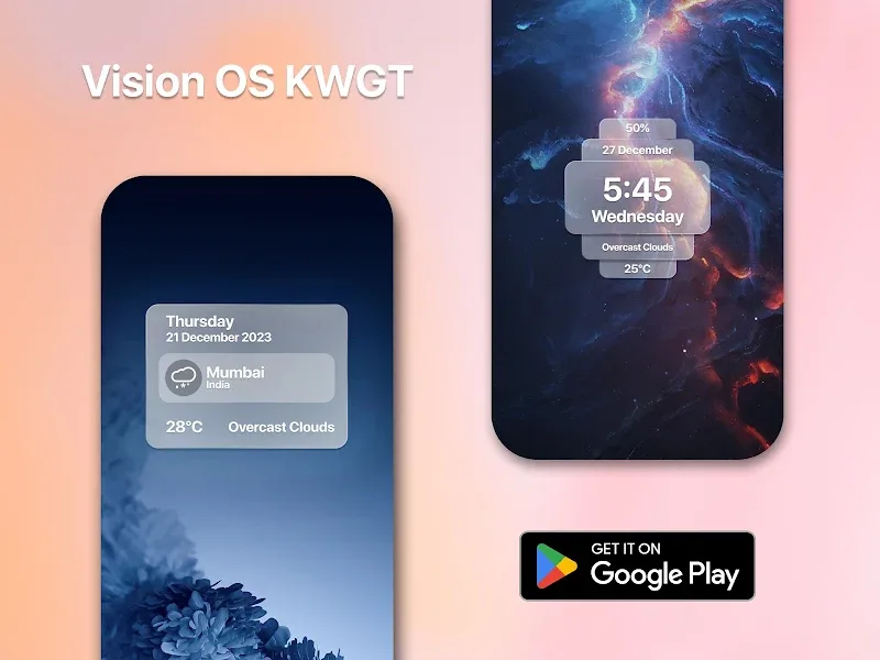 Vision Pro KWGT will bring you an extremely attractive and interesting launcher. The application will bring you the most diverse features and tools, so you can edit your phone quickly and extremely easily. You will be able to come and own a more beautiful and attractive interface than the default interface. Are you ready to come to this new interface?