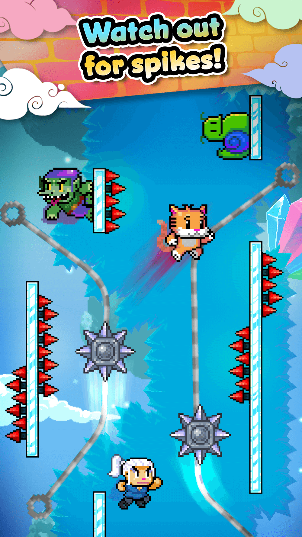 - Wall Jumps: The game will bring you walls of different heights, and you will have to move and skillfully jump over these walls to continue your journey, bringing you extremely dynamic and fun gameplay.