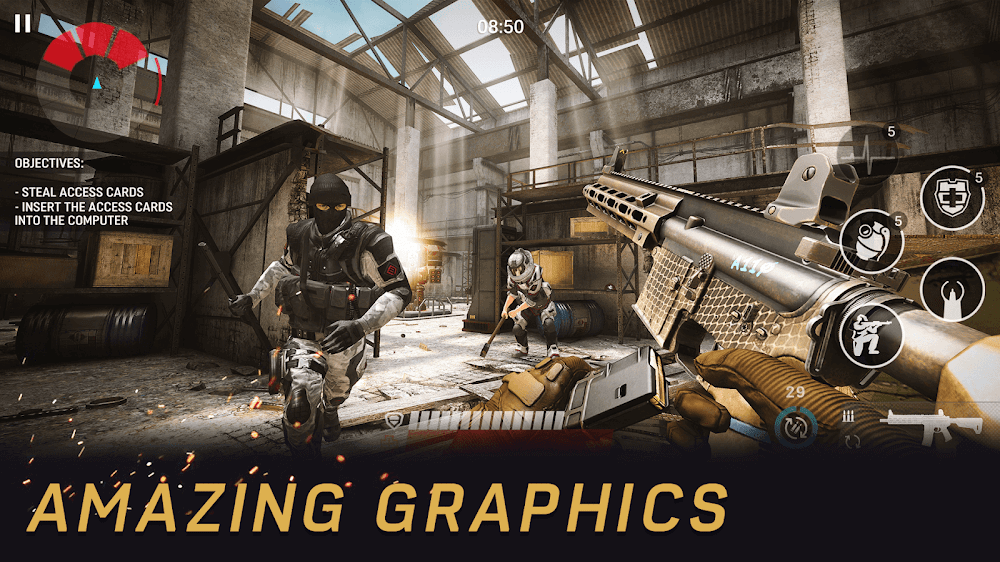 - Skill-based progression: All the elements of an FPS genre appear in this game. Therefore, you need a stable combination of strength, tactics and teammates if you want to win.