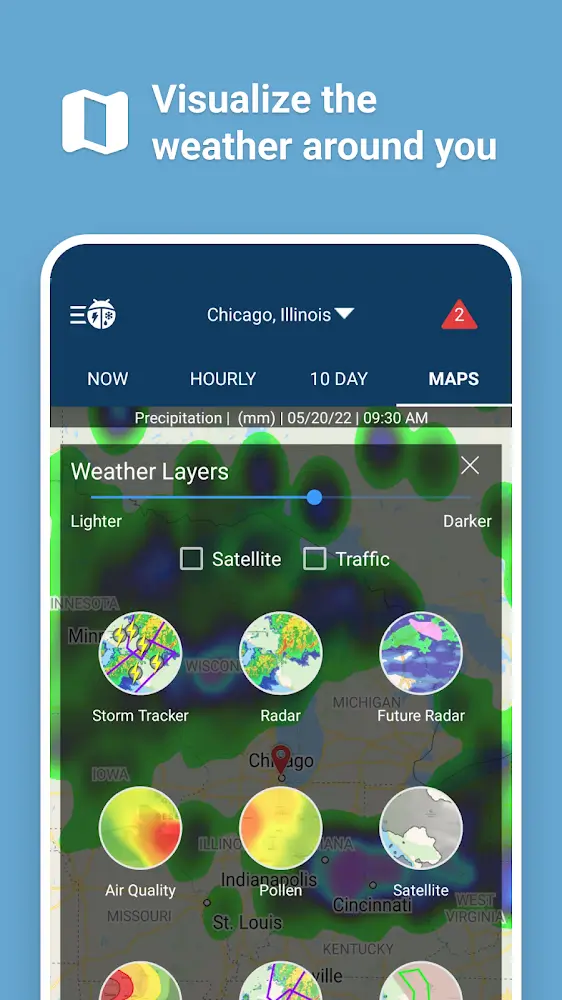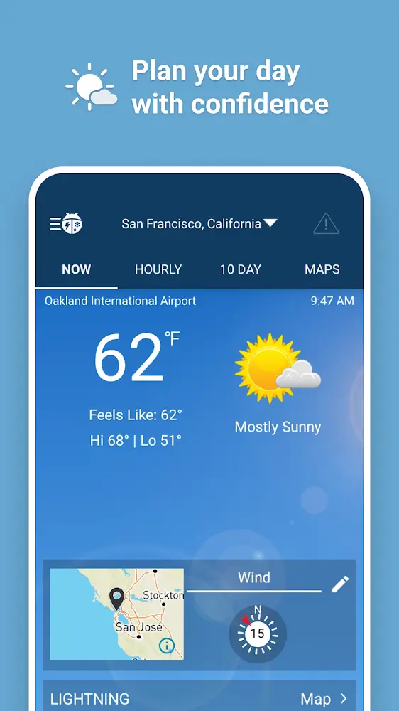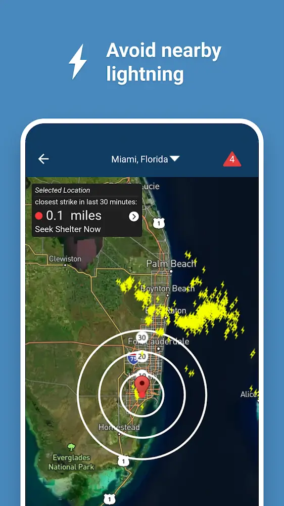 - Real-Time Lightning: In special cases, you need to know the weather characteristics to protect yourself. For example, you will receive predictions about dangerous thunderstorms near the area.