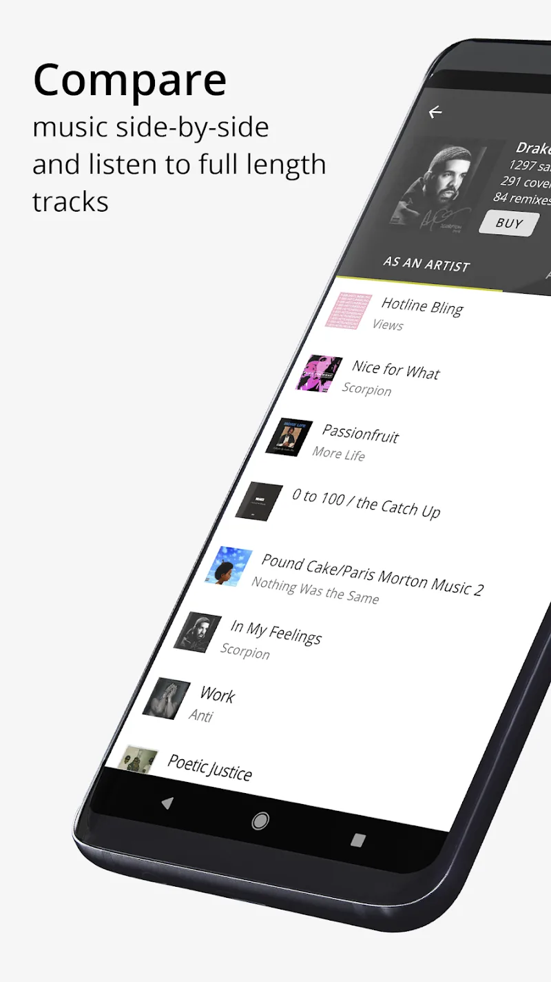 - Listen side by side: And when you find it, you can put the two songs side by side to compare more meticulously.