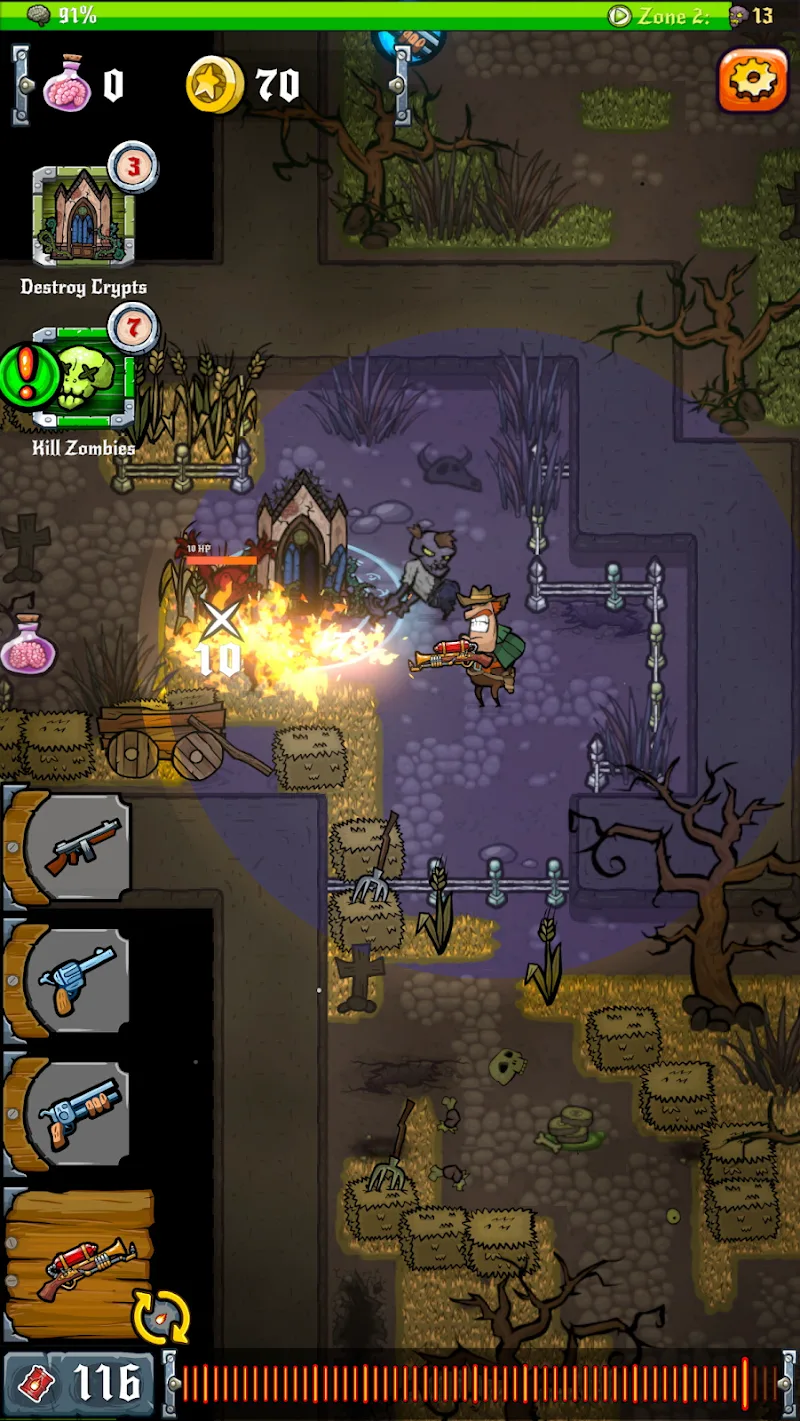 At its core, Wild Zombie West offers accessible last stand gameplay. Simply move your hero and weapons auto-target hordes. Focus on dodging and positioning as you mow down the living dead with a satisfying arsenal. Biting bullets put you in control against the decaying masses.