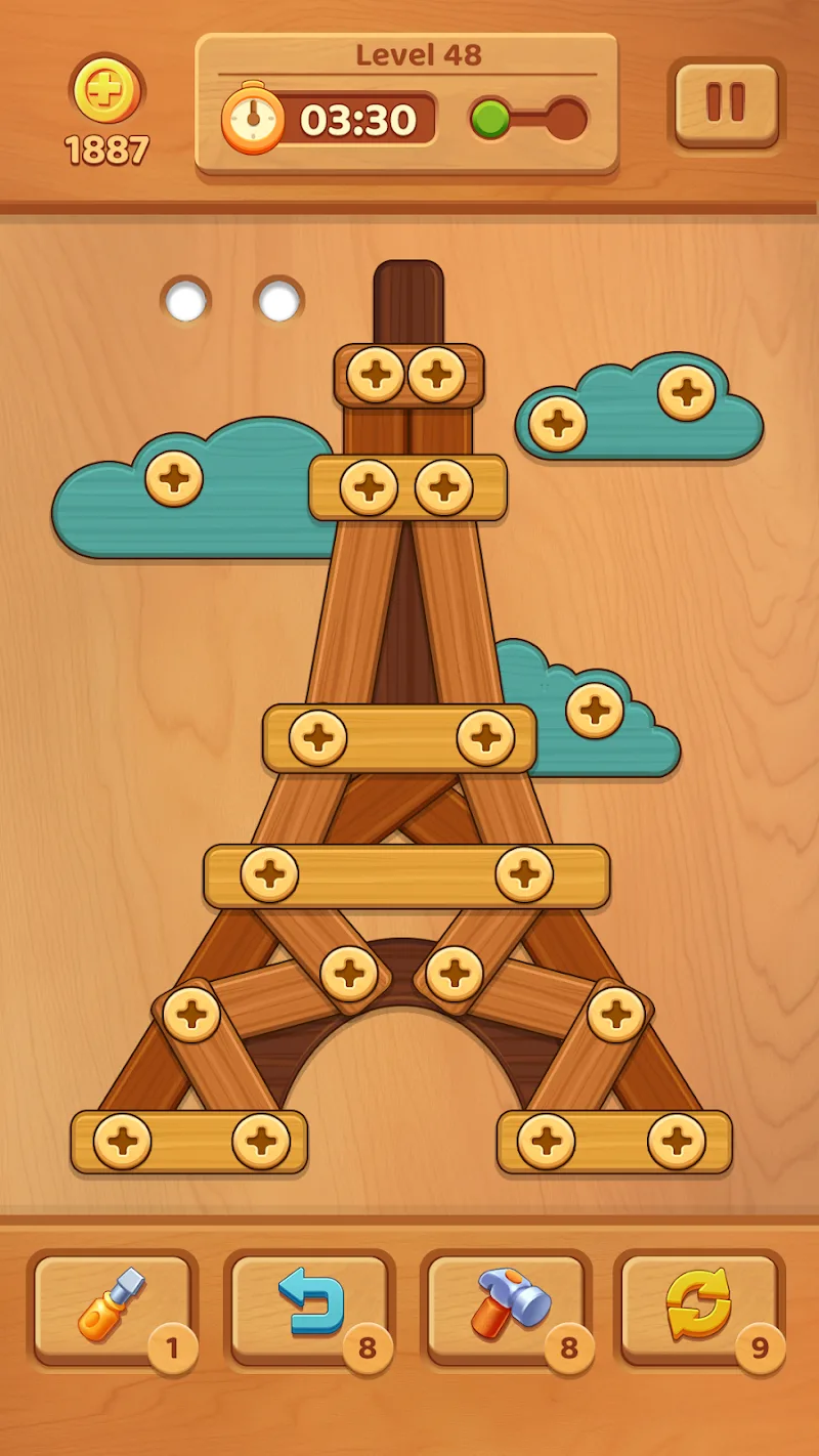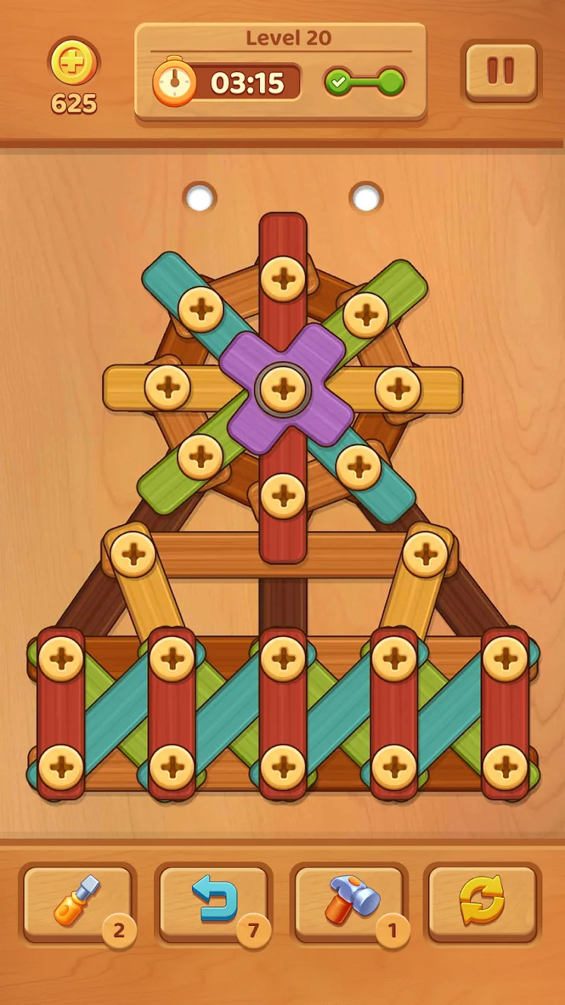 In addition to the ability to play extremely simple, the game can also provide its players with the ability to develop related to the brain when performing the challenges set. The game will create different levels of challenges related to the complexity of wooden pieces and screws so that players can continuously develop their puzzle-solving abilities.