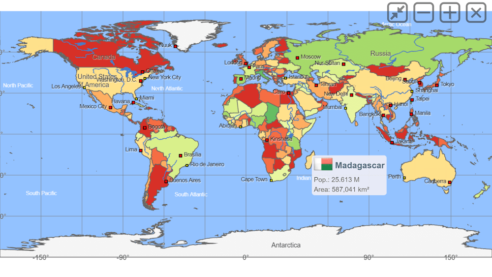You will notice a distinct and intriguing map system when you visit this application. Users can view over 260 maps of countries from around the world. The maps are meticulously designed and precise to the last detail. The application also includes a flag system and other information such as area, population, etc. As a result, you will better understand the world’s countries. Coordinates can be used to search for territories, regions, or countries worldwide.