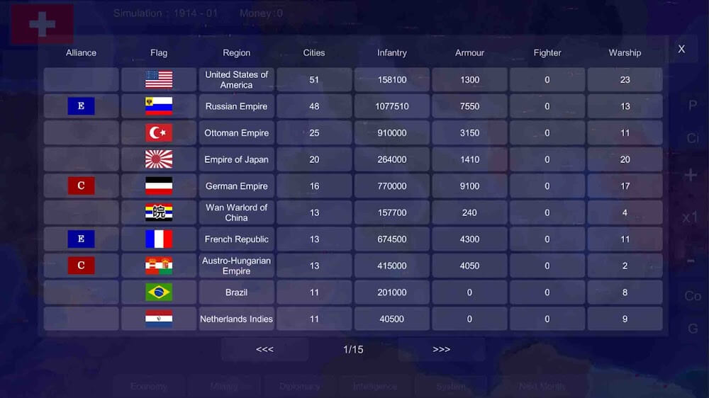 This game will provide maps with useful information about the circumstances and characteristics of countries involved in the First and Second World Wars. This map, which features a different color for each country, can help you determine the countries’ locations. As a result, by simply looking at the map and comparing it to the colors provided, it is possible to determine the location of any country on the planet. Furthermore, the game’s system will organize each location on the map according to the coordinate system, making it much easier and faster to look up information. Players can also easily switch between various charts to obtain more specific information and control the fight.