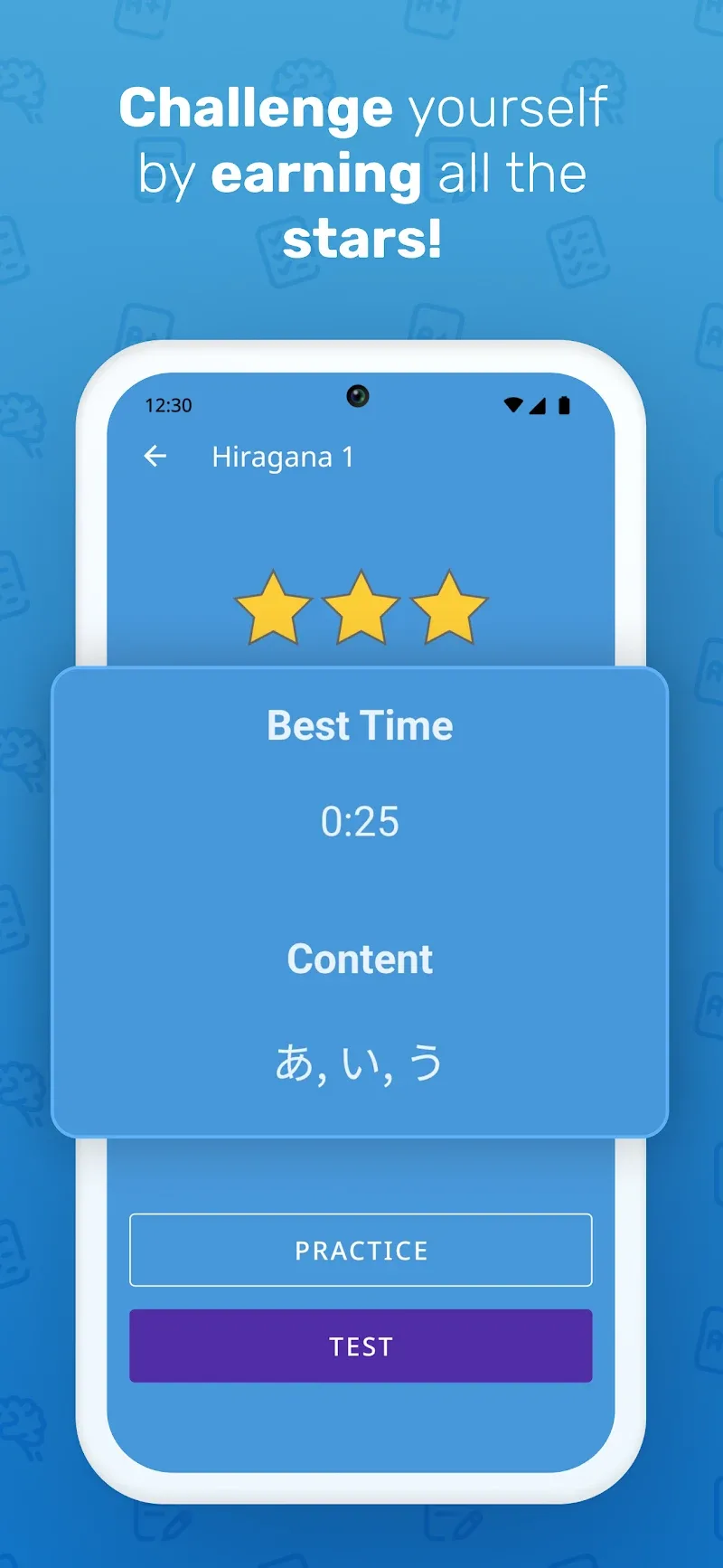 The application provides a perfect space for users to practice and learn Japanese. Interesting language practice sessions will be tailored to the user’s level. They will participate in additional periodic tests and receive corresponding scores. A review program appropriate to their abilities is also built to ensure that users always have space to practice.