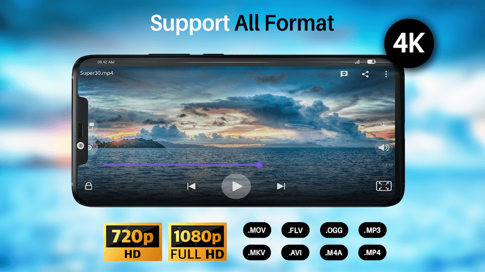 WXPlayer can play various video file types, including MKV, MP4, M4V, AVI, MOV, 3GP, FLV, WMV, RMVB, and TS, amongst many more. With the help of this all-in-one video player, users may easily play any video format. This app can play videos anywhere, from standard definition to ultra-high purpose.