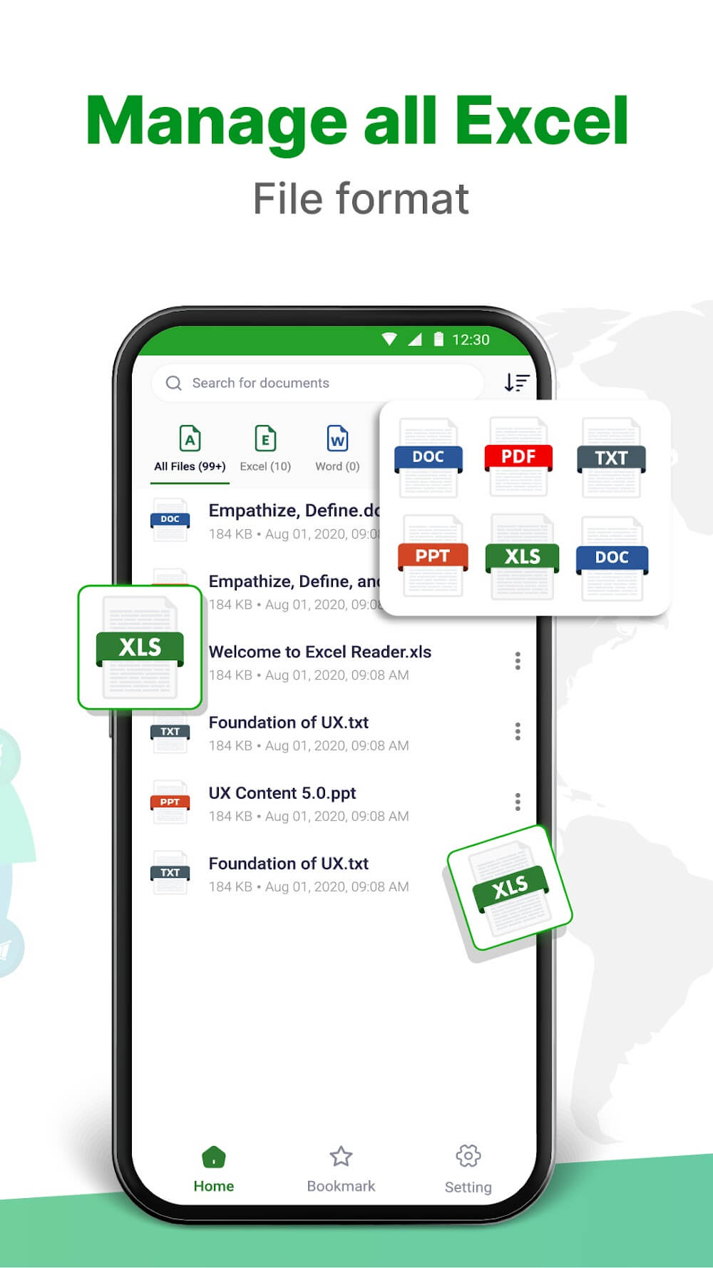 - Supports exporting and backing up file XLS reader through sharing.