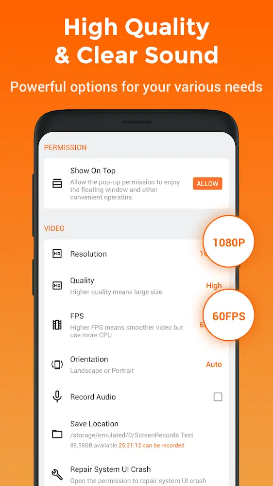 Regarding the main use of the app, we probably already understand that this is an application that helps record all of our activities on the phone screen. Because of its main features, users will often have two main purposes when using the App. First and also the reason that most users use is the purpose of recording how they play the games they are playing on their phone to show others or even for themselves to review, and second. Second, it’s probably the phone screen feature so your friends can also see the movie content you’re watching.