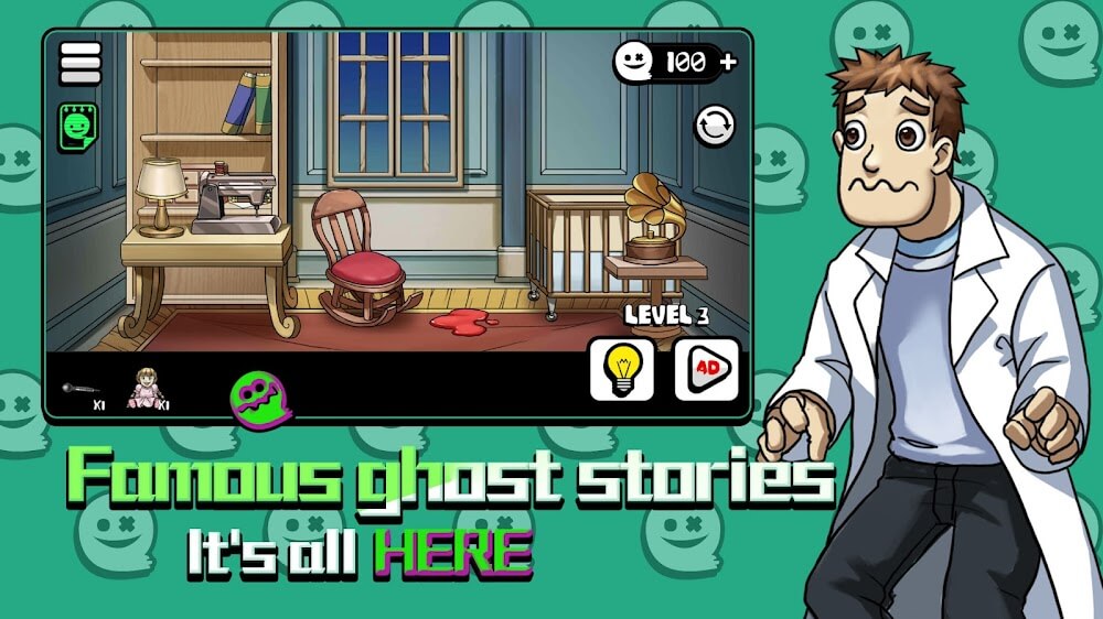 You Can’t See Me has provided several items to help you complete this challenge. You may use these items whenever you want and may add related special support features. The game will take you into empty rooms where ghosts will constantly appear; you must keep your mind sharp or be scared to death.
