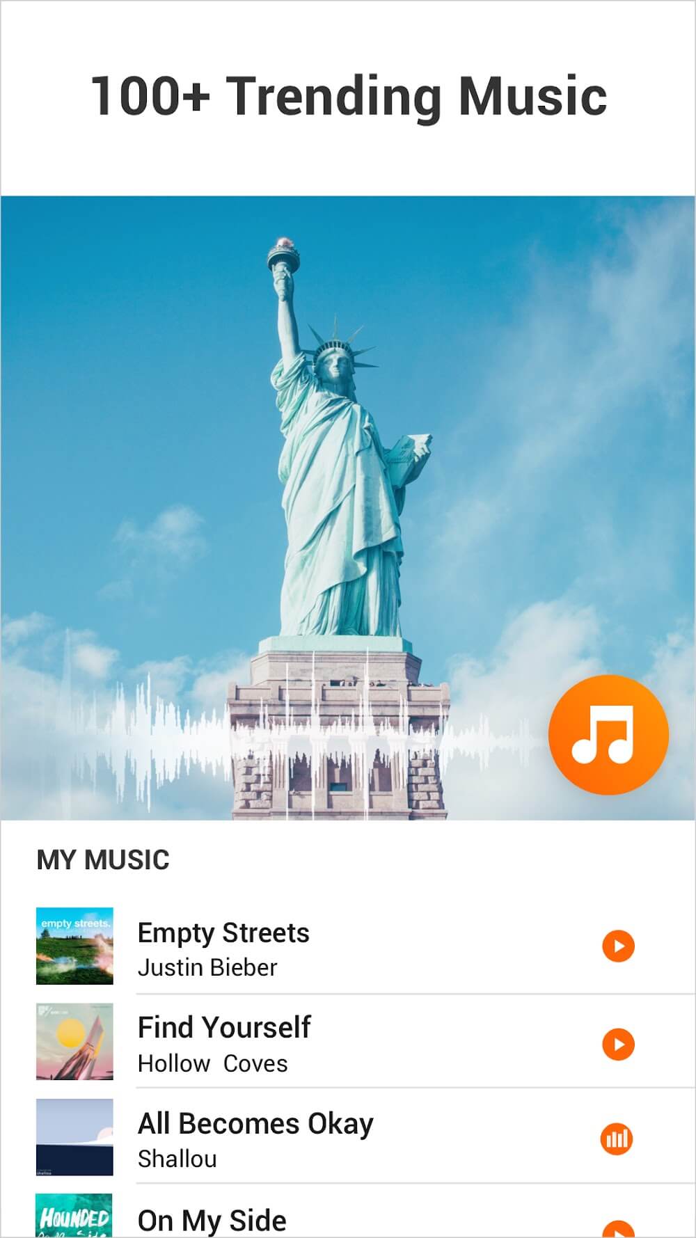 - Customize slideshows: Thanks to this YouCut tool, you can easily choose songs that match the theme and mood of the video, and simply adjust the volume, cut and paste music into the video.
