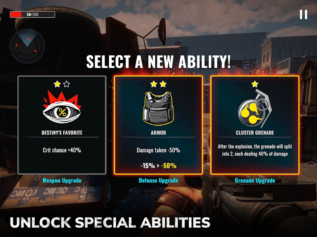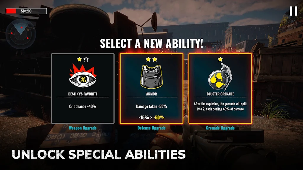 Challenges will appear more and more, and players can practice their handling ability when participating in challenges. Besides, facing challenges will also help you get upgrades during the game. You will know how to use special skills and gain many new power upgrades. Players will need to develop new strategies, and this strategy will greatly assist you in the process of destroying zombies.